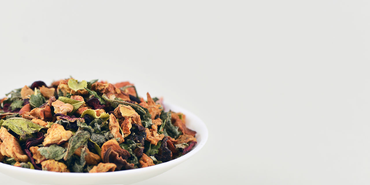 Apfelstücke*, Hibiskus*, gesäuerte Apfelstücke* (Apfel, Säuerungsmittel: Zitronensäure), Apfelminze*, natürliches schwarzes Johannisbeeraroma, Buchublätter*, gefr.-getr. rote Johannisbeeren*, natürliches Tonka-Aroma